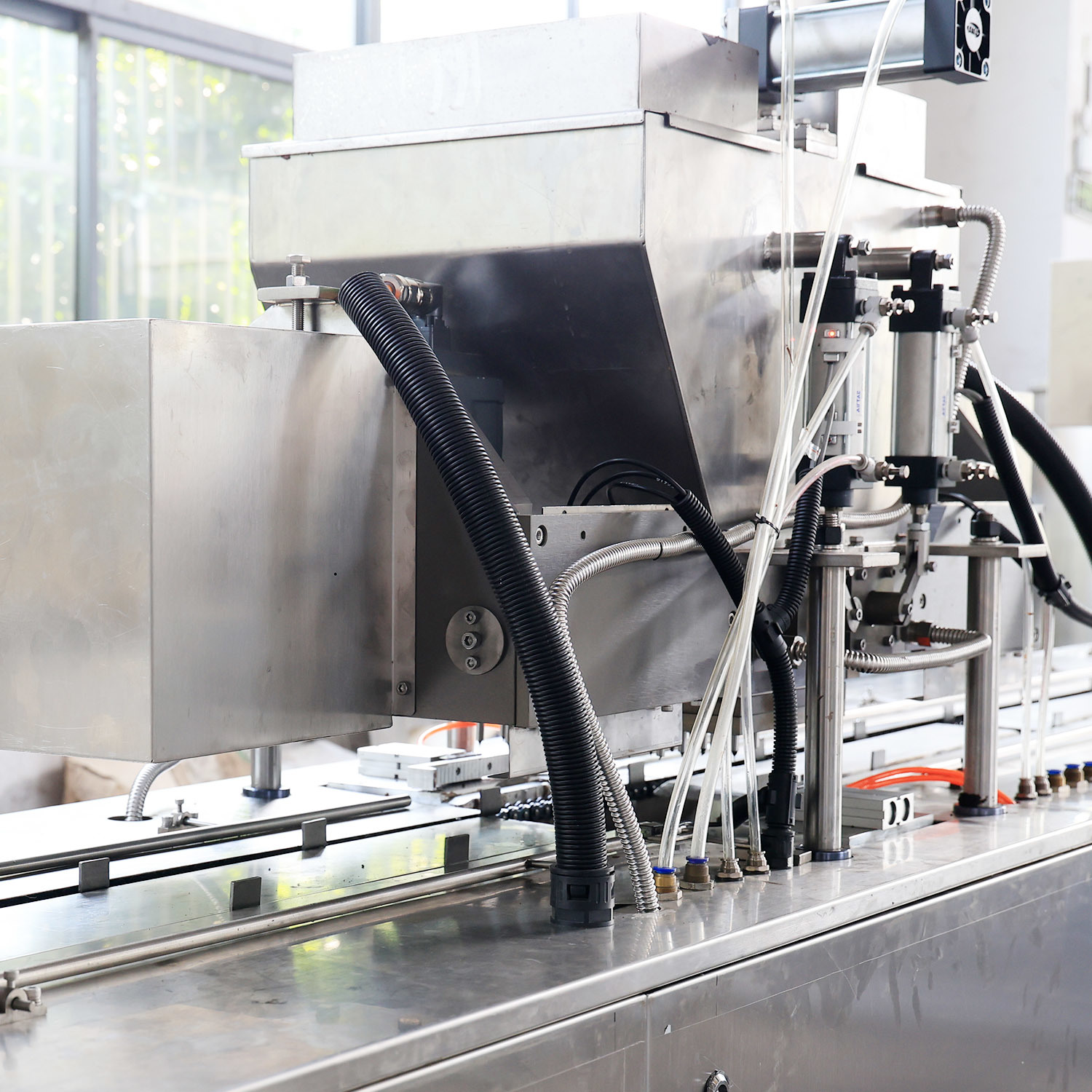 該組合式巧克力澆注線由多個獨立模塊組成,各個模塊像積木一樣拼接在一起,所有模塊都可以很容易地組裝成一條全自動生產線,并在客戶有限的工廠車間內進行匹配。